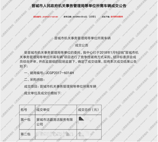 1)晉城市人民政府機(jī)關(guān)事務(wù)管理局等單位所需車輛項(xiàng)目成交公告
