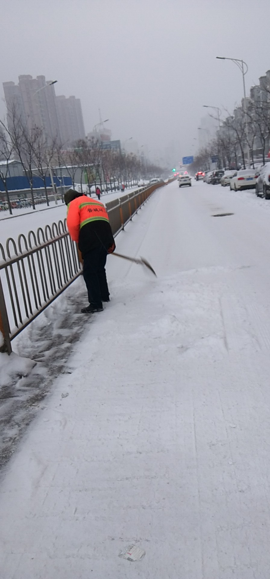 新年的第一場大雪,到處銀裝素裹,扮美了整個(gè)晉城,但大雪帶來美景的同時(shí),也給大家的出行帶來了不便。為保障大雪期間出行安全,潔霸公司各保潔點(diǎn)的負(fù)責(zé)人積極組織員工進(jìn)行主干道積雪清掃,在除雪過程中,雖然天氣寒冷,但大家除雪的熱情卻不減,大家有的撒融雪劑,有的 清掃積雪,有的用鏟子除冰,奏響鏟雪破冰進(jìn)行曲。