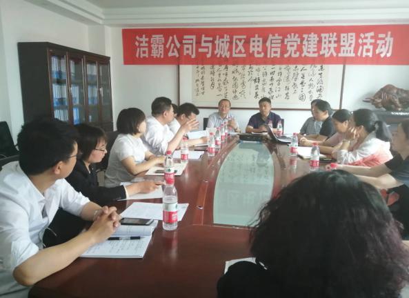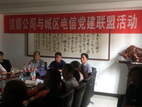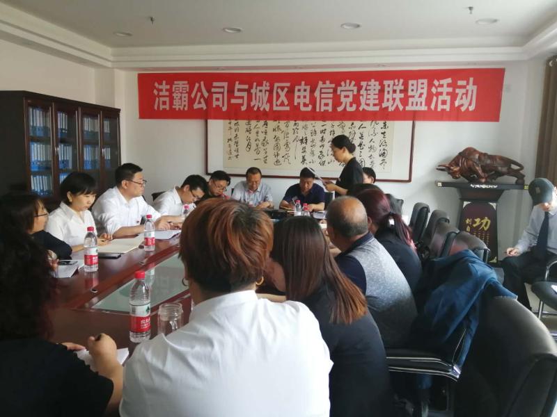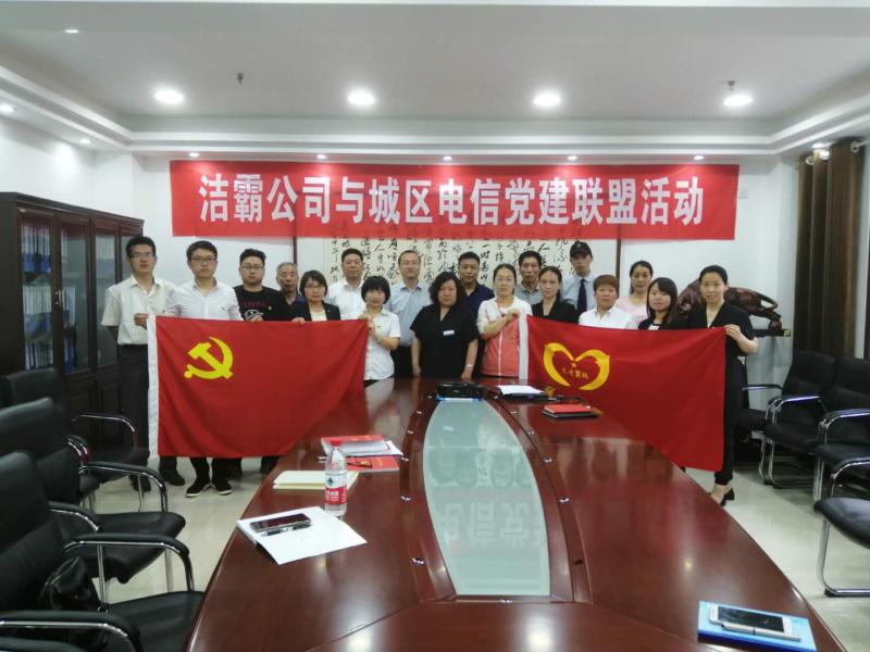 5月27日下午,潔霸公司黨支部與城區(qū)電信東城西城聯(lián)合黨支部開展了黨建聯(lián)盟活動。首先雙方對公司的概況以及黨支部成員的構(gòu)成做了詳細(xì)的介紹?偨(jīng)理程晉軍及支部書記李山虎對城區(qū)電信公司黨支部成員的到來表示了熱烈的歡迎。