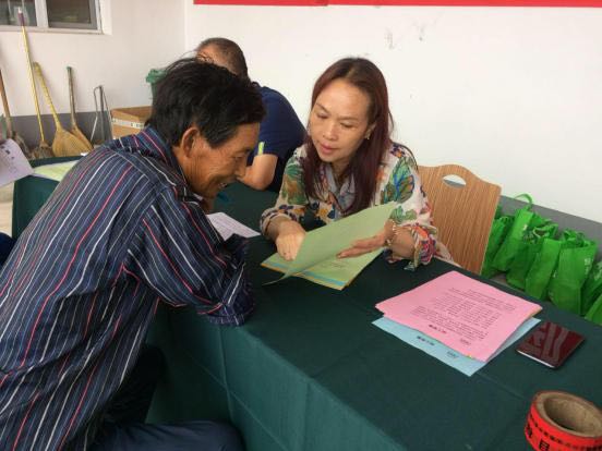 志愿者為農(nóng)村剩余勞動(dòng)力介紹潔霸公司招工簡(jiǎn)章 村民們認(rèn)真閱讀招工簡(jiǎn)章。