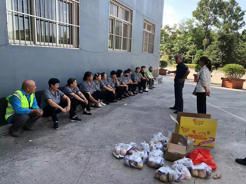 工會(huì)主席崔偉一行先后走訪萬(wàn)達(dá)廣場(chǎng)、山西科技學(xué)院、晉城市金鳳凰廣場(chǎng)、鳳西廣場(chǎng)、白馬寺、青蓮寺、陽(yáng)城北留潔霸洗業(yè)等地,對(duì)戶外高溫下作業(yè)的高空清洗員工、物業(yè)保潔員工、環(huán)衛(wèi)員工、園林綠化員工及洗衣廠員工等一線勞動(dòng)者進(jìn)行慰問。崔主席充分肯定了高溫下堅(jiān)持奮戰(zhàn)在一線員工的敬業(yè)精神,感謝他們?yōu)闈嵃浴皯?zhàn)高溫、斗酷暑”付出的辛勤勞動(dòng),并將面包、桃子、白糖等慰問品送到員工手中,讓高溫下堅(jiān)守在一線的員工感受到來(lái)自潔霸大家庭的關(guān)愛。