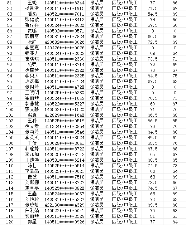 2024年2月4日第10批保潔員中級(jí)認(rèn)定人員成績(jī)公示