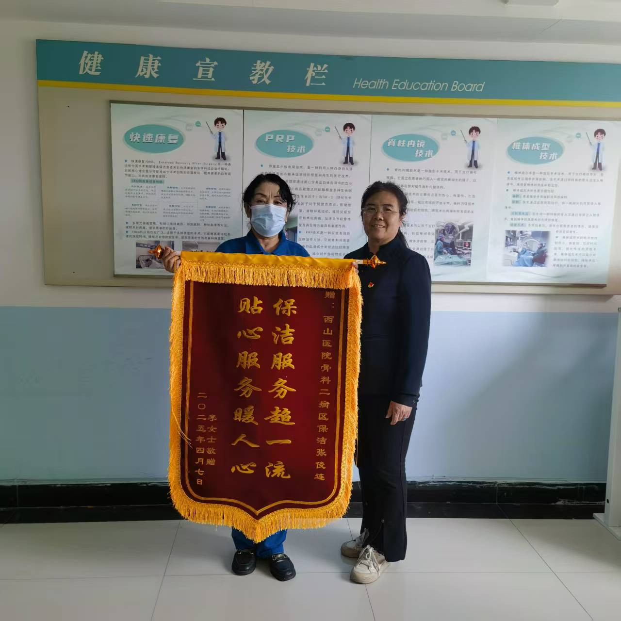 4月7日上午,一面印有“保潔服務(wù)超一流,貼心服務(wù)暖人心”的紅色錦旗被送到山西潔霸太原西山醫(yī)院項(xiàng)目服務(wù)部。一面錦旗,述說(shuō)著一起平凡而又暖心的故事……